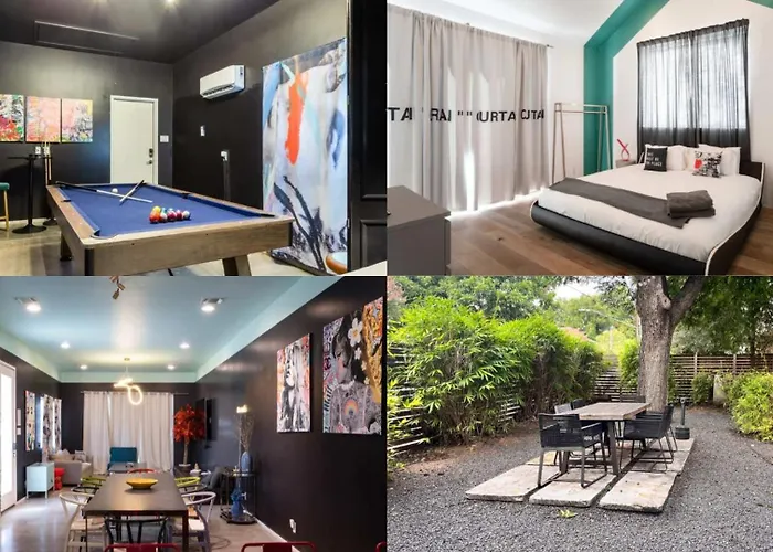 Offering a patio overlooking the city, Austin Group Clubhouse 6Min Walk To Rainey Street Villa is located only a 5-minute walk from the East Cesar Chavez. Providing guests with Wi-Fi and a car park, this 3-bedroom holiday home is 2.7 km from the creekside Boggy Creek Park.